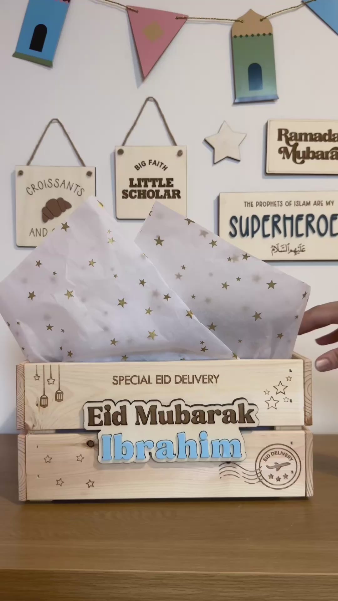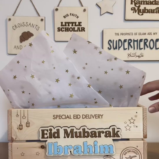 Celebrate Ramadan with our beautifully crafted Special Ramadan Delivery Wooden Crate, personalised with your child’s name and designed to bring joy and tradition to your celebrations. This elegant crate can be filled with an assortment of treats and other festive delights, all carefully curated to enhance your Ramadan experience.