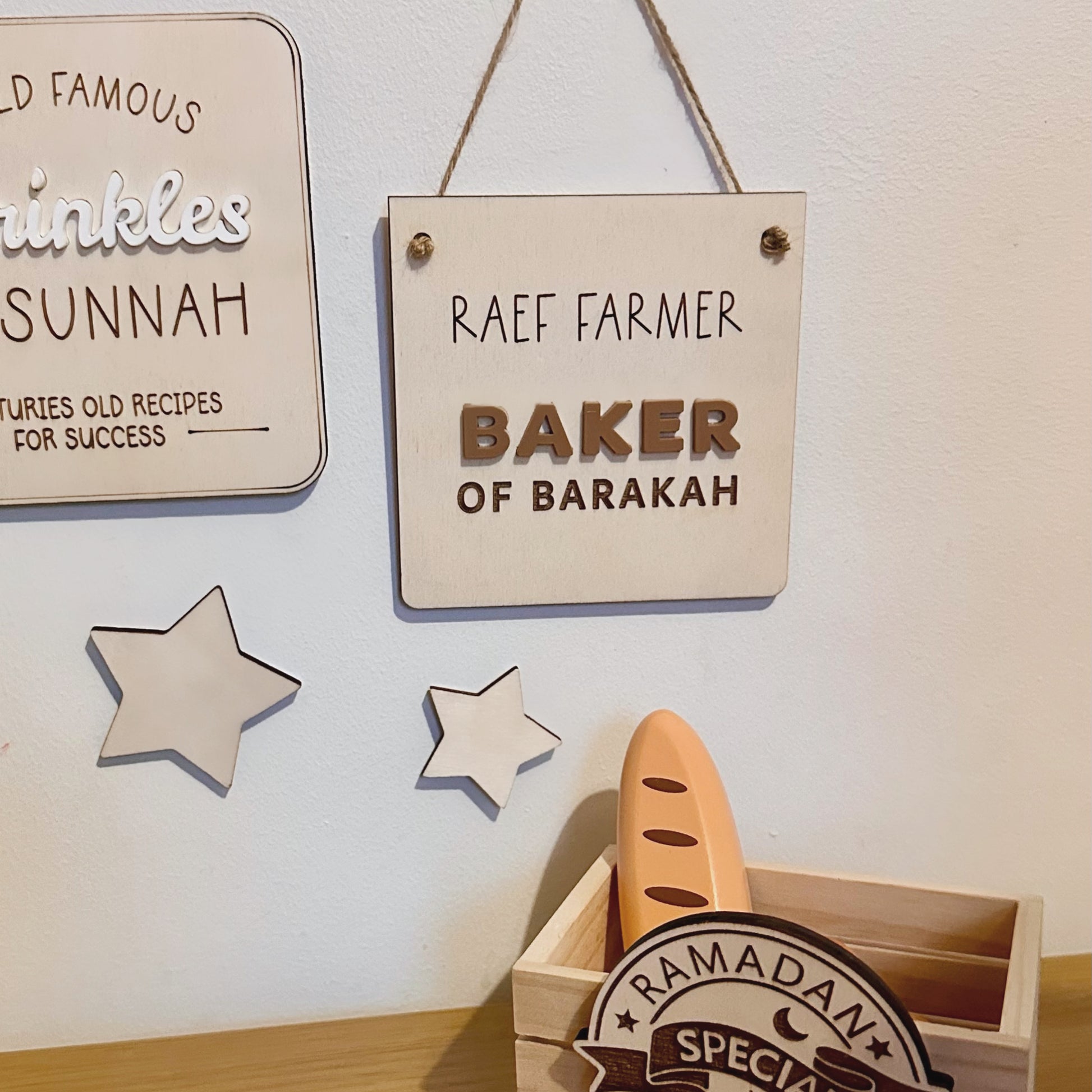 Bring joy, faith, and a sprinkle of sweetness to your little one’s room and play time with our Personalised Baker of Barakah Cafe Hanging Pennant!